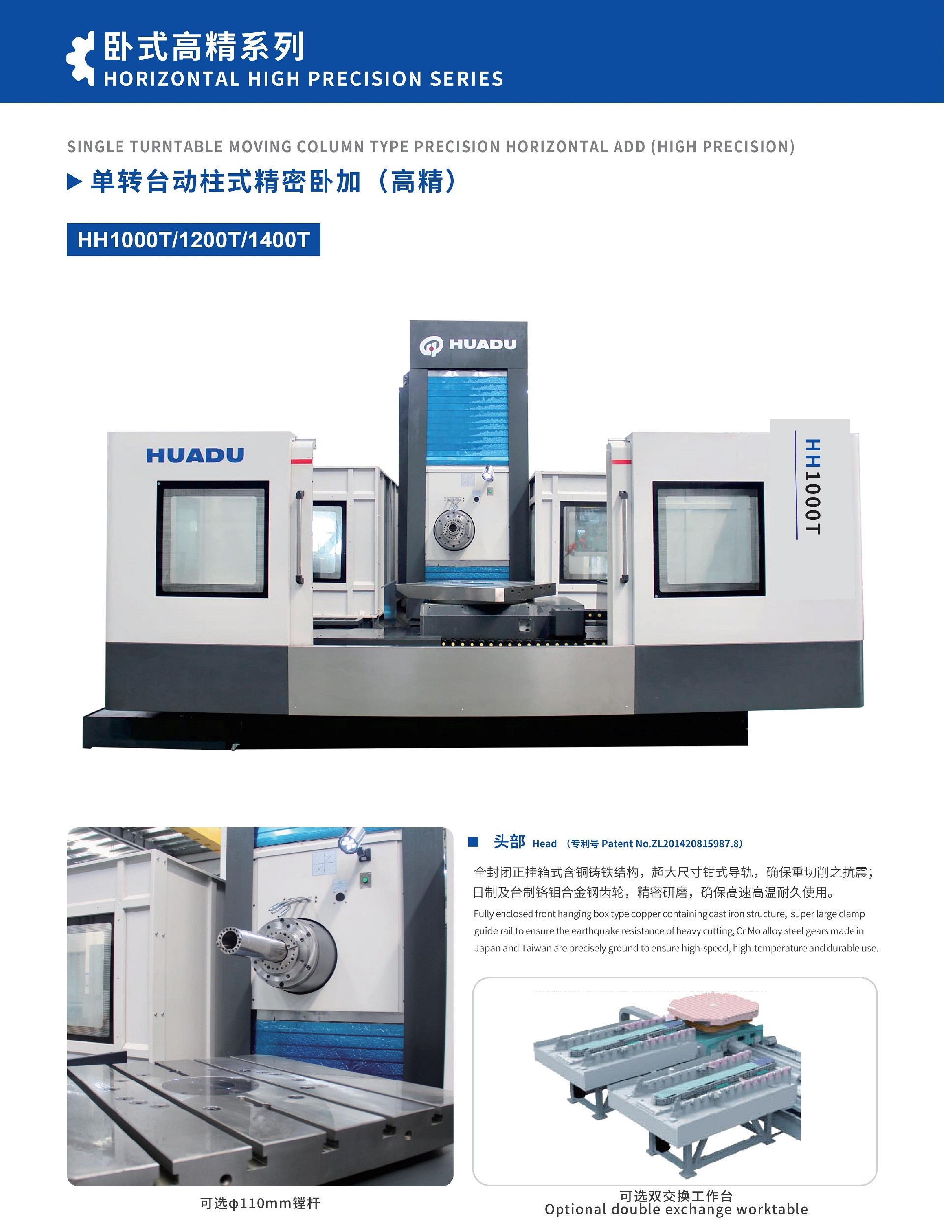 頭部:全封閉正掛箱式含銅鑄鐵結(jié)構(gòu),貼進口膠帶,超大尺寸鉗式導(dǎo)軌確保重切削之抗震;日制及臺制鉻鉬合金鋼齒輪,精密研磨,確保高速高溫耐久使用;